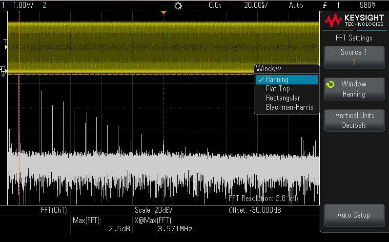 Ulteriori capacità di analisi sono offerte dalla funzione FFT con gate temporale, che permette di correlare gli eventi sulla stessa schermata con una rappresentazione nel dominio del tempo e della frequenza.