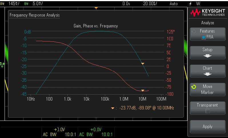 Il diagramma di Bode, altre novità introdotta da questa serie di oscilloscopi, risulta molto semplice da spiegare grazie alla presenza del generatore WaveGen integrato e alla funzioni di analisi della risposta in frequenza.