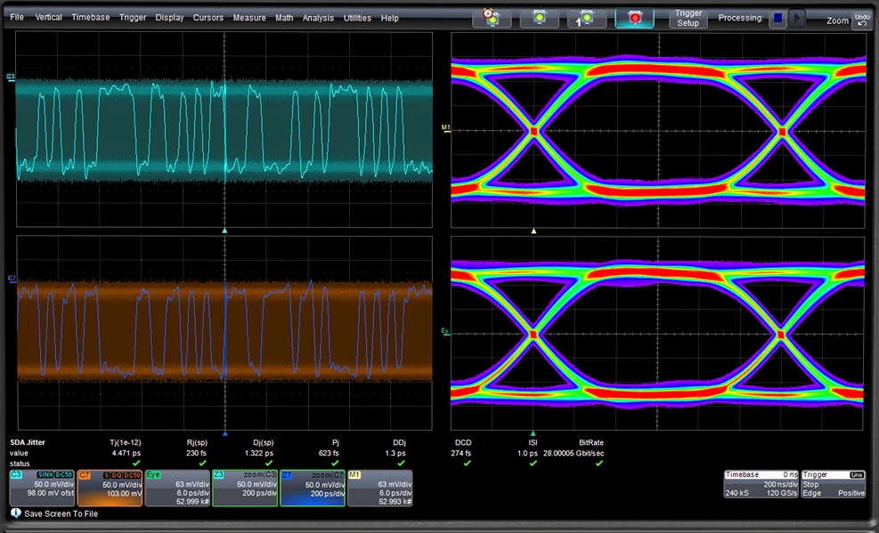 I quattro canali alla massima larghezza di banda consentono di trovare e collaudare i problemi di diafonia (crosstalk) fra corsie di dati seriali mulitple oppure tra rete ed una singola linea di dati seriali e offrono la possibilità di acquisire sia il segnali differenziali del clock e dei dati per standard di dati seriali quali il Quick Path Interconnect (QPI).
