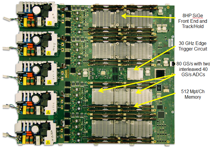 Ciò ha permesso a LeCroy di supportare in un singolo modulo di acquisizione 4 canali indipendenti da 36 GHz di banda con campionamento a 80 Gs/s e memoria di analisi di 1024 Mpunti/canale, che possono essere trasformati tramite la tecnologia DBI in 2 canali funzionanti fino a 60 GHz con campionamento a 160 Gs/s.