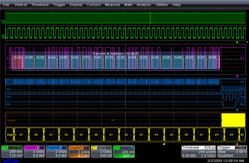 La soluzione sviluppata da LeCroy si chiama bus LSIB, una tecnologia che permette la diretta connessione del bus ad alta velocità PCI Express X4 presenta all'osciloscopio con il PC, consentendo così di trasferire lunghe acquisizioni, che possono essere composte da 100 Mpts e oltre, all'elevatissima velocità fino a 325 Mpts/s.