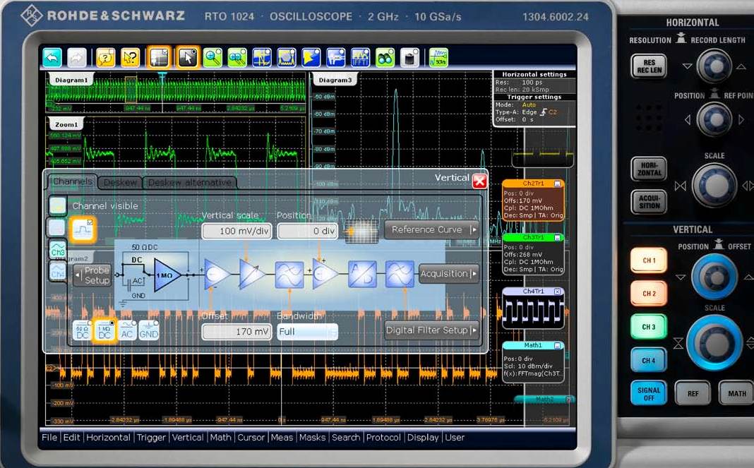 Rohde & Schwarz entra prepotentemente nel mercato degli oscilloscopi con la serie di strumenti RTO da 1 GHz e 2 GHz introduce una serie di ricca di novità tecnologiche, come la sezione di trigger completamente digitale e un’interfaccia utente molto intuitiva e flessibile basata sull’integrazione di comandi colorati, interazioni tattili e trasparenze.
