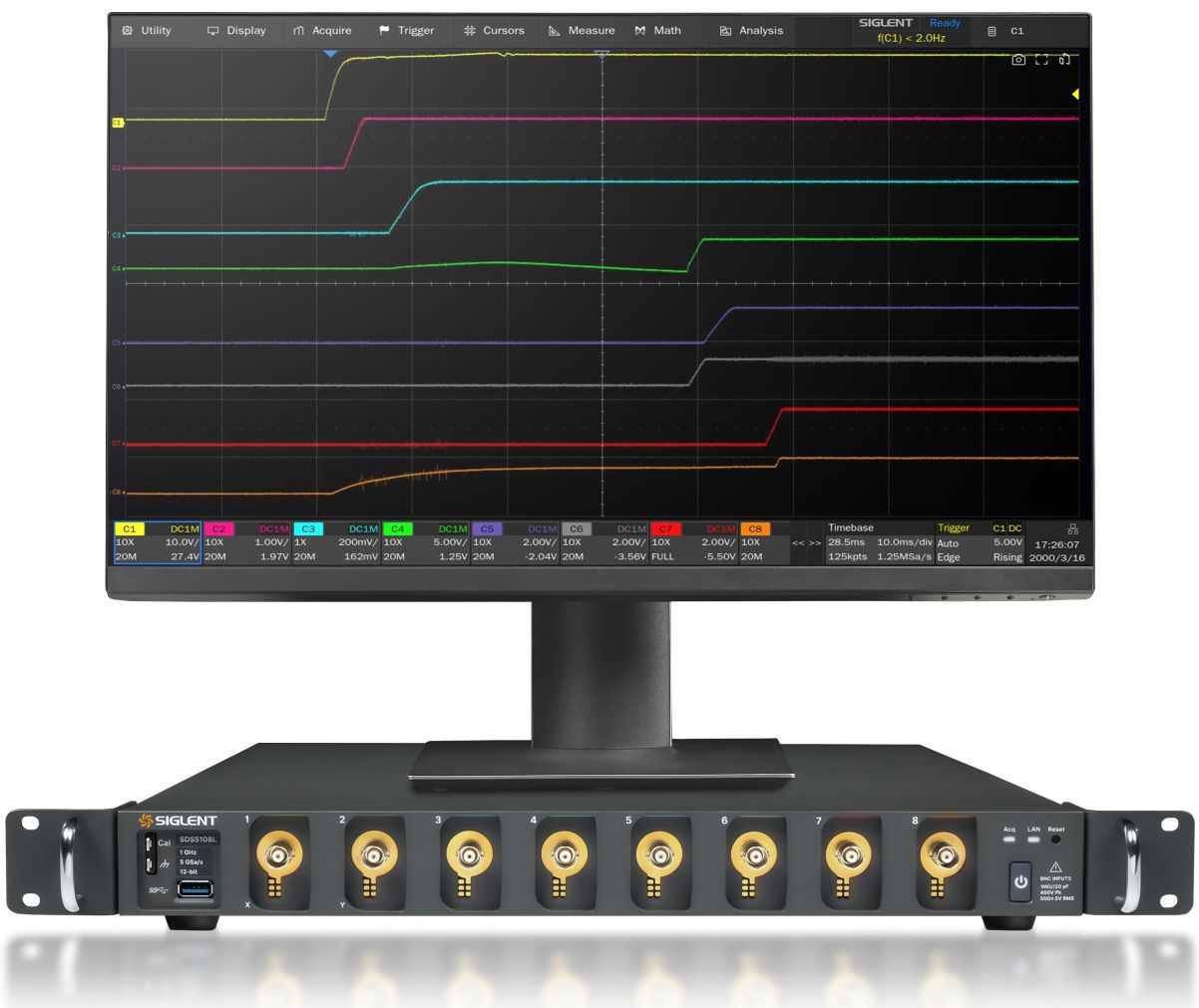 Le nuove famiglie di strumenti Siglent serie comprendono modelli con quattro, sei o otto canali analogici completamente sincronizzati e può essere ampliata con 16 canali digitali.