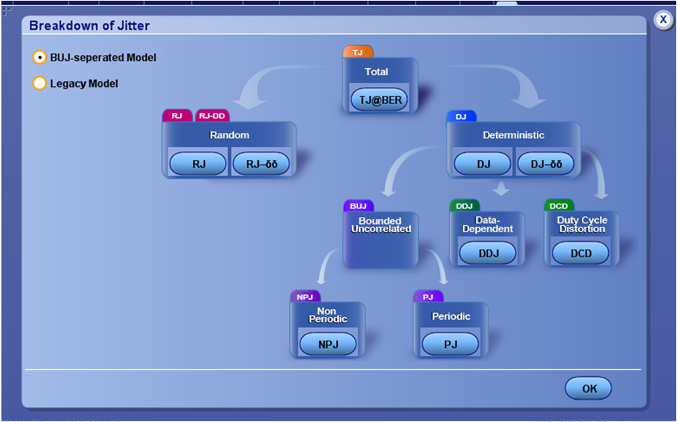 Le funzionalità di misura del noto pacchatto opzionale DPOJET dedicate all'analisi di jitter e temporizzazioni sono state aggiornate per supportare meglio le esigenze dei progettisti dai canali seriali veloci multi corsia (multi lane) dove possono insorgere facilmente importanti fenomeni di diafonia (crosstalk). Il pacchetto di analisi DPOJET ora consente anche di classificare il jitter cosiddetto BUJ (Bounded Uncorrelated Jitter), un fenomeno molto significativo per tutti i sistemi di comunicazione che lavorano con flussi con velocità superiori a 10 Gb/s.