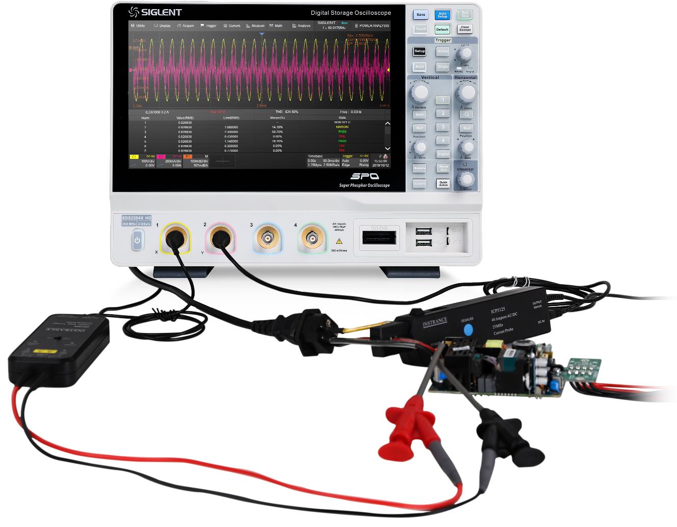 Insieme alla gamma di pinze amperometriche e sonde di tensione differenziale di Siglent, questa opzione si rivela molto utilie per ottimizzare i progetti di alimentatori a commutazione.