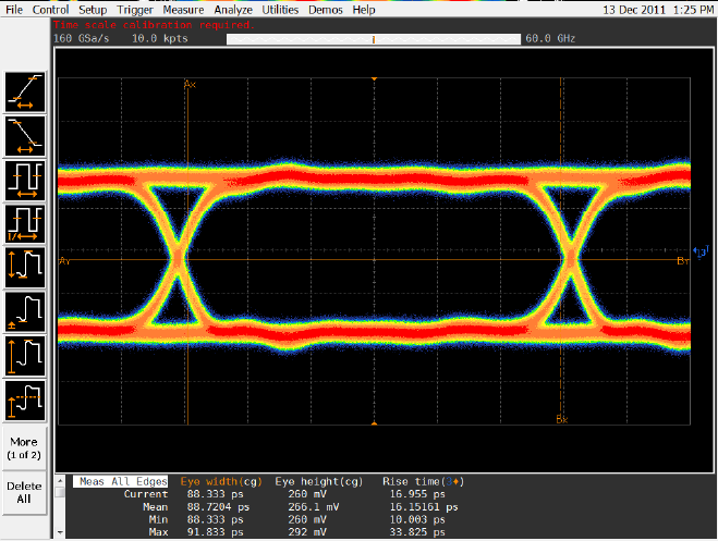 Inoltre, con una nuova soluzione software dedicata alla sincronizzazione di sistemi di misura e acquisizione multicanale svilyppata da Agilent, fino a 10 oscilloscopi serie Q possono essere affiancati per comporre un sistema fino a 40 canali di misura ad altissima velocità con una garanzia di disallineamento temporale (skew) massima di 200 fs.