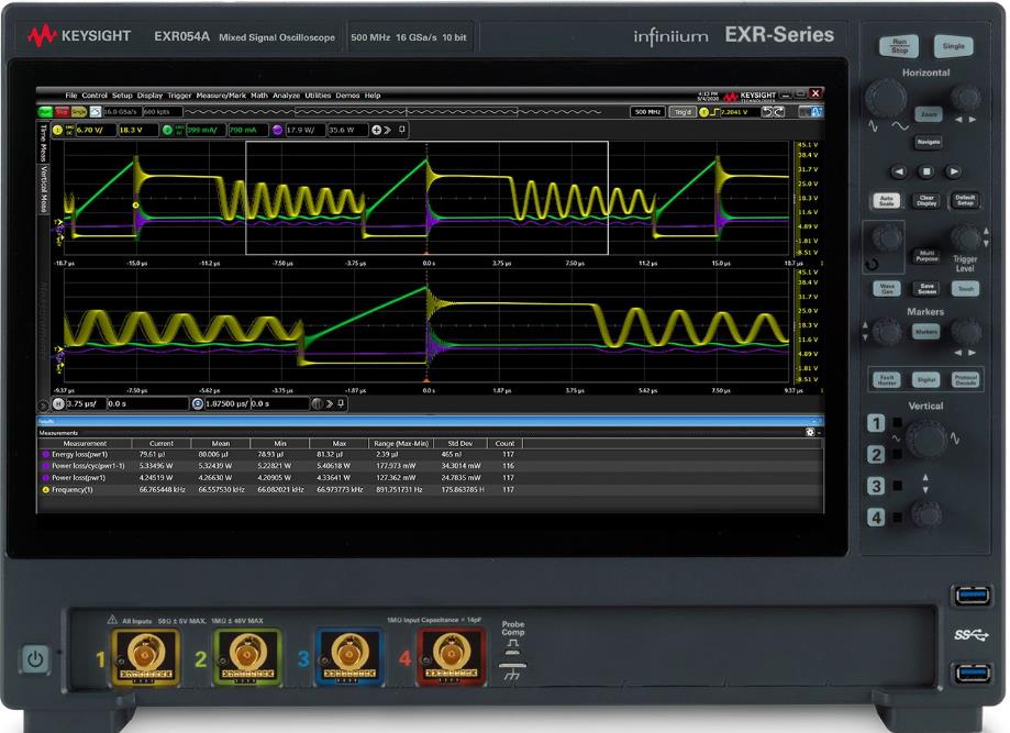 Grazie alla disponibilità di un numero elevato di canali, della possibilità di acquisire i segnali con risoluzione nativa di 10 bit, estendibili fino a 16 bit nelle modalità ad alta risoluzione, e alla disponibilità di vari pacchetti software dedicati, gli oscilloscopi Keysight MXR risultano particolarmente interessanti anche per lo sviluppo e la caratterizzazione dei sistemi elettronici di potenza e dei sistemi di alimentazione in genere.