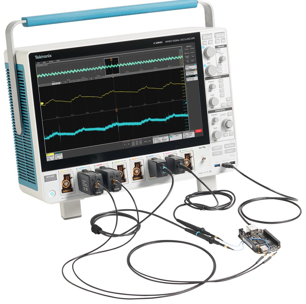 La disponibilità delle configurazioni a 6 e 8 canali per gli oscilloscopi Tektronix Serie 6B,oltre a quella a 4 canali, ben si adatta a questo tipo di scenari, ad esempio per la messa a punto di sistemi di conversione di potenza che devono comunicare in rete.
