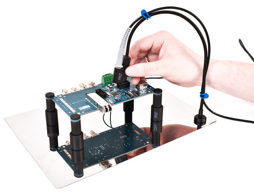 Pico ha infatti sviluppato escogitato una soluzione molto efficace per tenere saldamente in posizione un circuito stampato che si sta esaminando e posizionare con precisione tutte le sonde di test necessarie, in modo che l'utente abbia le mani libere per utilizzare l'oscilloscopio o altri strumenti di misura.