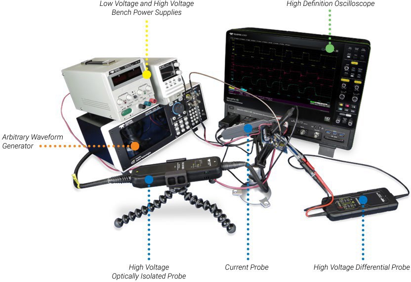 I dispositivi in nitruro di gallio e carburo di silicio sono ampiamente utilizzati negli inverter di potenza, per la cui progettazione e ottimizzazione la precisione nella misura dei tempi di commutazione è fondamentale.
