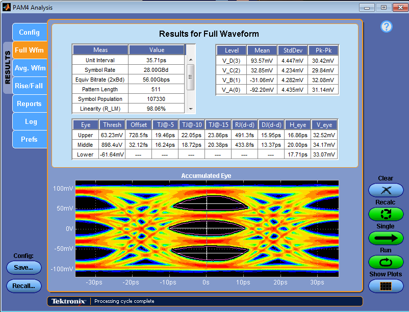La soluzione disponibili per gli oscilloscopi ad altissime prestazioni della serie DPO70000SX supporta le più recenti specifica per il rilevamento degli errori sui segnali con modulazione PAM4 e della caratterizzazione delle nuove funzionalità di equalizzazione FFE (Feed Forward Equalization) e DFE (Decision Feedback Equalization), che permettono di raggiungere velocità di trasmissione dei dati che arrivano a 56 Gb/s per canale, come previsto degli standard IEEE 802.3bs e OIF-CEI.