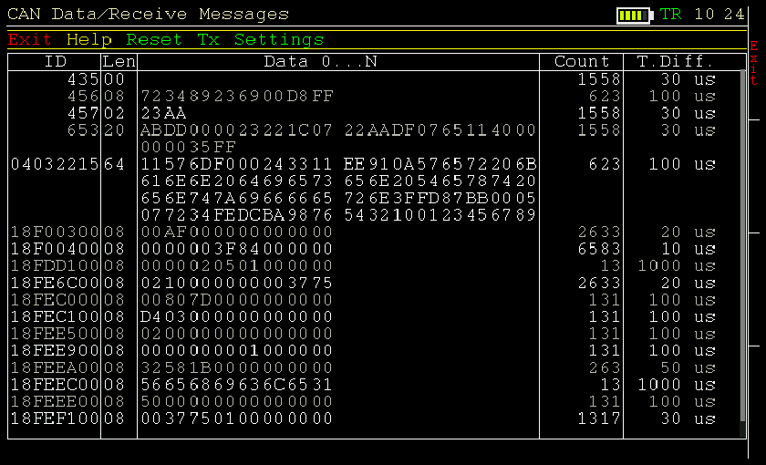 Messaggi ricevuti sul bus CAN FDA livello di protocollo, il traffico CAN in arrivo viene mostrato in un elenco, opzionalmente con una rappresentazione simbolica per una migliore interpretabilità.