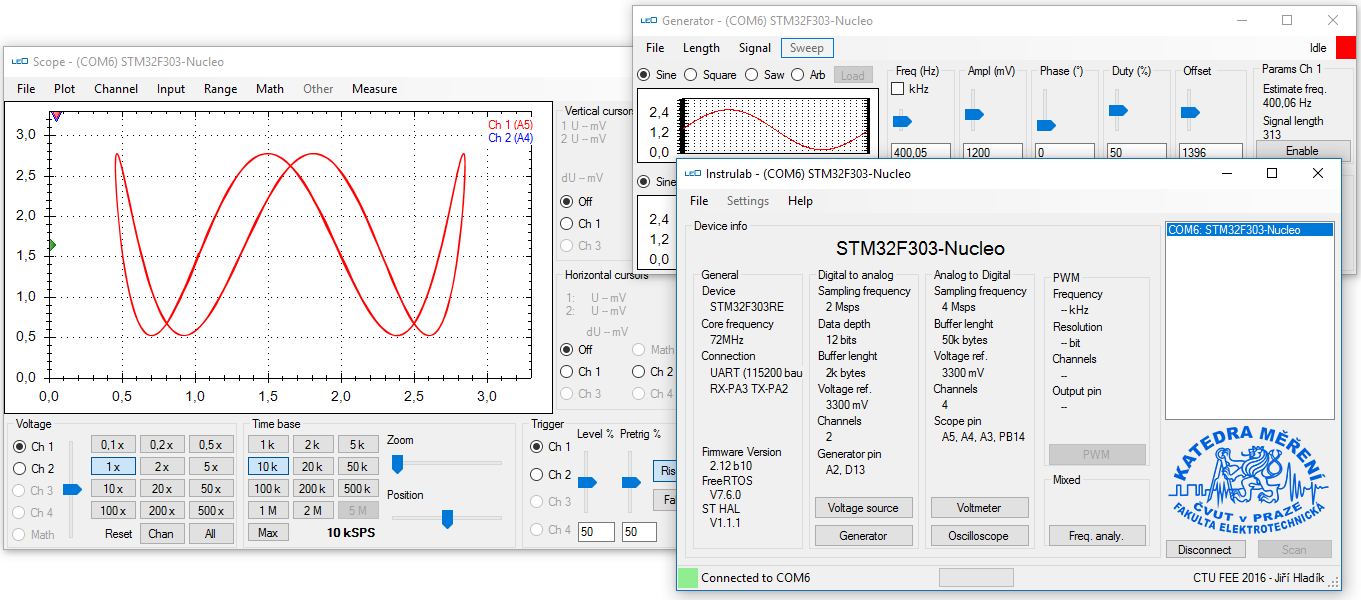 Per cominicare a misurare basta procurarsi un'economicissma scheda di sviluppo per microcontrollori Nucleo di STMicroelectronics (i modelli STM32F303RE o STM32F042F6) e scaricare il software cortesemente messo a disposizione dall'università ceca.