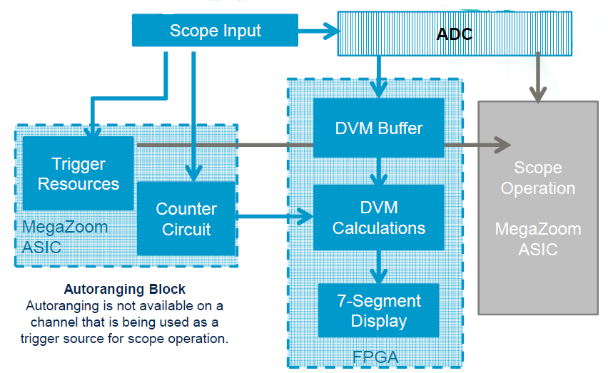 L'idea di inserire la funzione di voltmetro digitale in uno strumento come l'oscilloscopio che intrinsecamente già misura la tensione può sembrare bizzarra, ma si inserisce nel filone di concentrare nello stesso strumento un sempre maggior numero di funzionalità di misura per cercare di ridurre il numero di strumenti e cablaggi presenti nei normalmente già affollati laboratori elettronici.