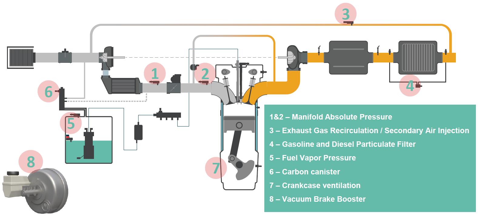 I sensori di pressione di Melexis possono essere utilizzati in varie applicazioni in ambito automobilistico per migliorare le prestazioni dei motori a combustione interna