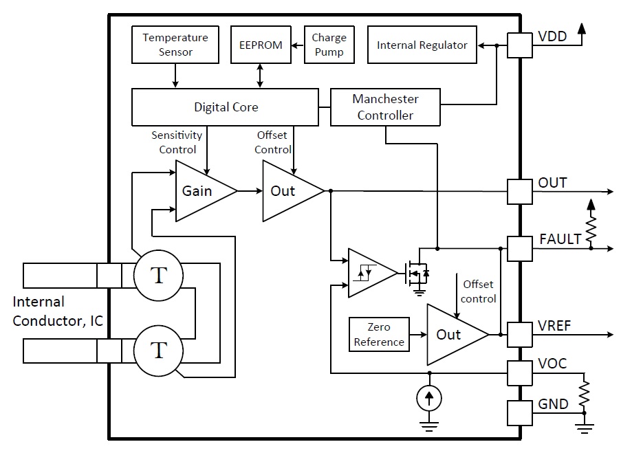 Diagramma funzionale del sensore di corrente Allegro ACS37100Il sensore ACS37100 è stato progettato proprio per risolvere questa sfida. Grazie alla sua larghezza di banda e al rapidissmo tempo di risposta fornisce un segnale di retroazione della corrente ad alta fedeltà, fondamentale per i circuiti di controllo in applicazioni a commutazione rapida. Questo sensore di corrente magnetico consente di controllare con sicurezza e affidabilità sistemi più veloci, massimizzando l’efficienza e aumentando la densità di potenza.