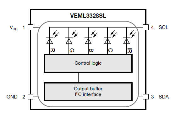 I sensori VEML3328 e VEML3328SL rilevano il livello di luce rossa, verde, blu, chiara e a IR (infrarossa) grazie alla presenza all'interno di un singolo circuito integrato CMOS dei necessari, fotodiodi, amplificatori e circuiti di trattamento del segnale analogico/digitale.