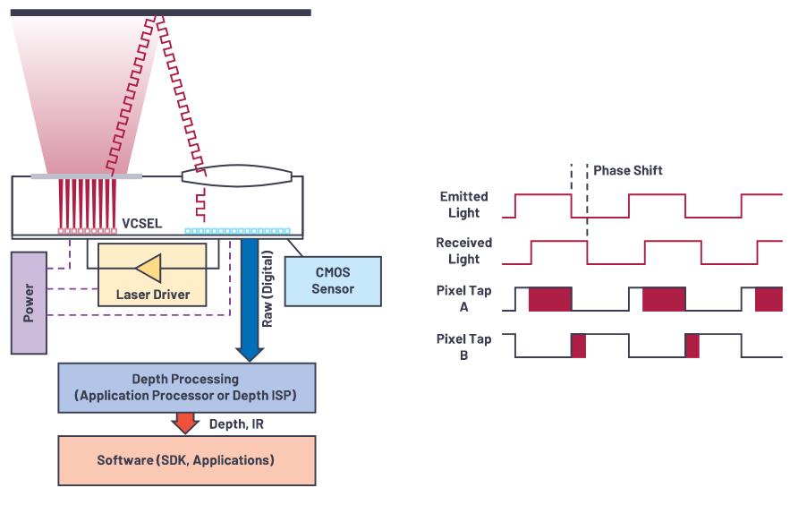 Principio di funzionamento del rilevamento di immagini 3D mediante misura del tempo di volo (ToF, Time of Flight)