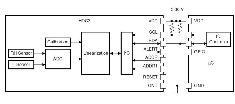 I sensori HDC3020 e HDC3020-Q1 offrono una grande precisione (verificata con procedura tracciabile dal National Institute of Standards and Technology) su tutta la gamma di tensione di alimentazione da 1,62 V a 5,5 V e il più ampio intervallo di temperature e umidità, con ±1,5% U.R.