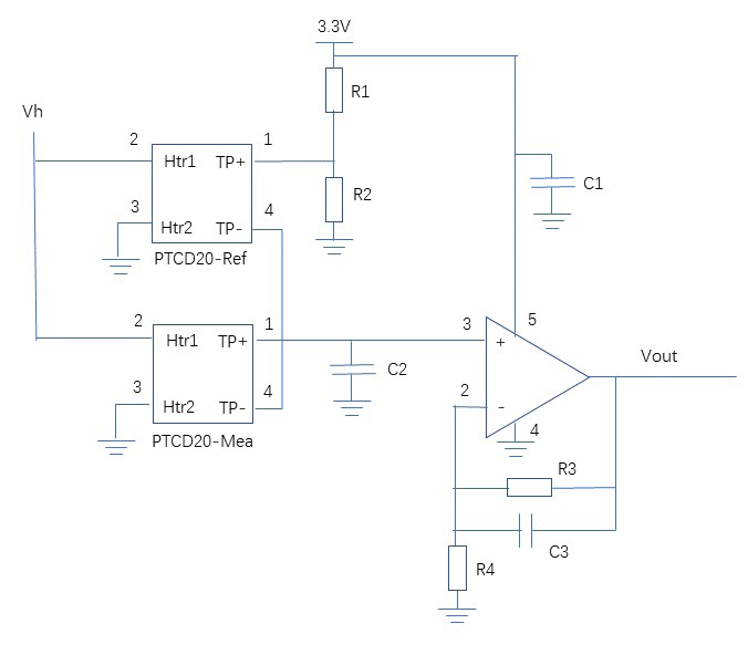 Una resistenza di riferimento, costruita con lo stesso materiale della resistenza di misura (garantendo lo stesso coefficiente termico di resistenza), risiede sul substrato del sensore e può essere utilizzata dal circuito di misura per compensare la variazione della temperatura ambiente.