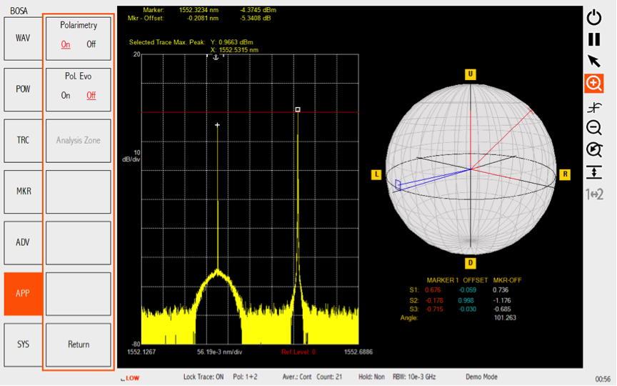 Lo strumento di punta Aragon Photonics, il modello Bosa 400, permette di osservare dettagliatamente lo spettro ottico con una risoluzione fino a soli 10 MHz (80 fm) con una gamma dinamica priva di spurie di 80 dB.