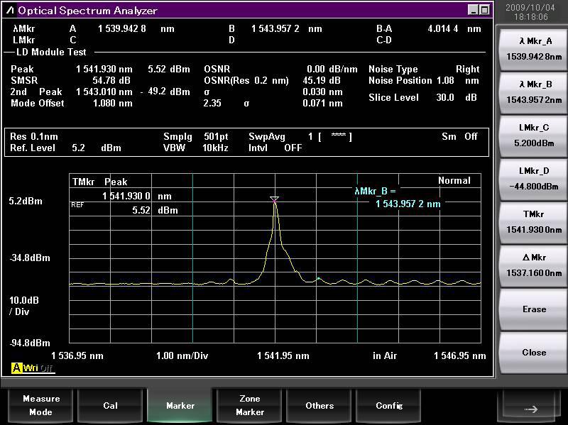 Tutti i parametri chiave utilizzati nei collaudi di produzione, come la misura della lunghezza d'onda ottica centrale e il rapporto OSNR (Optical Signal to Noise Ratio) sono misurati in sequenza semplicemente selezionando il tipo di dispositivo dal menu e i vari risultati vengono riportati sullo schermo.
