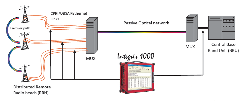 Integris 1000 permette di tenere sotto controllo il collegamento ottico CPRI che connette l'unità di elaborazione del segnale in banda base (BBU) e le antenne remote (RRH). Lo strumento consente di misurare tasso di errore sul bit (BER), latenza, indicazioni di guasto e relativo tempo di commutazione sull'hardware ridondato, traccia dei frame trasmessi e altri parametri operativi tipici delle reti di accesso mobili.