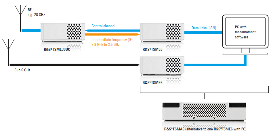 Finora, con lo scanner si rete R&S TSMx6 era possibile valutare accuratamente la copertura di una qualunque rete cellulare funzionante nelle bande di frequenza fino a 6 GHz. Ora, con l'aggiunta del nuovo convertitore di frequenza downconverter R&S TSME30DC, lo scanner di rete può analizzare anche tutti i segnali fino a 30 GHz, comprese quindi tutte le principali nuove bande di frequenza assegnate alla reti 5G NR.
