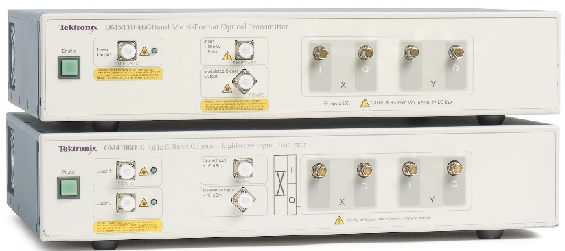 Il trasmettitore ottico OM5110, che integra i laser in banda C o L, ma suppporta appieno anche laser esterni, consente invece di generare i segnali tipici delle connessioni in fibra su lunga distanza con i più comuni formati di modulazione, tra cui BPSK, PM- QPSK e PM-16QAM, fino a una frequenza di cifra di 46 GBaud. Lo strumento consente di collaudare e caratterizzare gli amplificatori e i modulatori sfruttando tecniche di polarizzazione completamente automatiche e manuali con la più totale flessibilità.