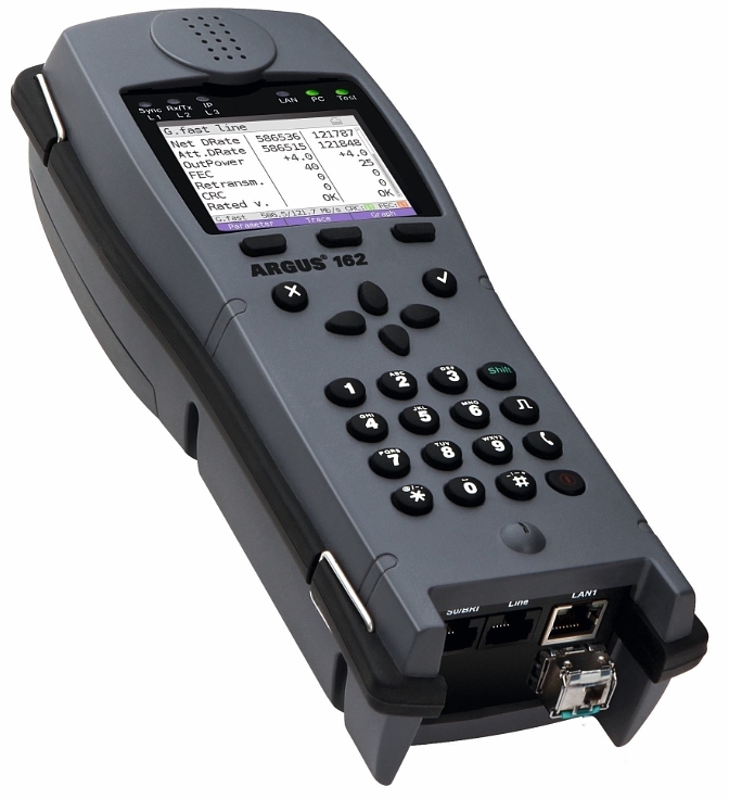 Il modello Argus 162 è adatto ad effettuare i test su ogni tipo di rete di accesso oggi sul mercato, dall'ISDN alla RTG, dai circuiti diretti E1 ai collegamenti ADSL2/2+ e VDSL2-Vectoring fino alle infrastrutture in fibra per GPON, LTE e Gigabit Ethernet.
