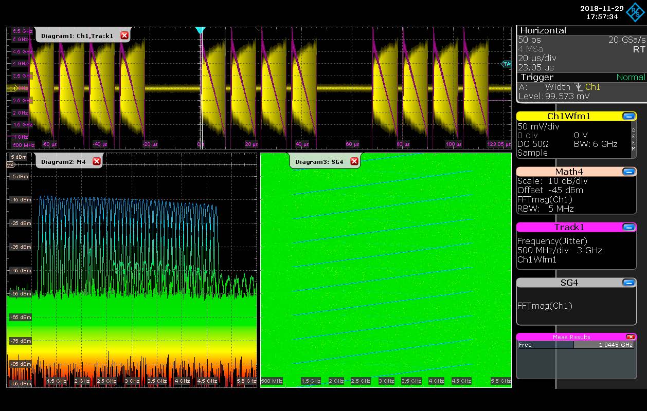 Per caratterizzare questi sistemi lo strumento di test deve possedere capacità multicanale ed assicurare che tutti i canali sono continuamente mutualmente coerenti. Gli oscilloscopi sono quindi perfettamente adatti allo scopo in quanto i canali sono per definizione strettamente allineati senza richiedere strumenti addizionali esterni come basi dei tempi od oscillatori locali condivisi.