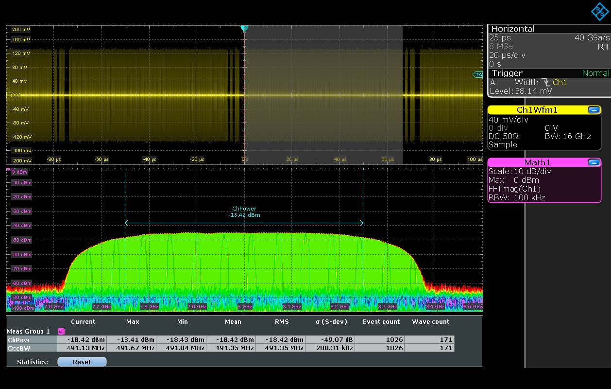 In conclusione, oggi gli oscilloscopi real-time offrono caratteristiche di larghezza di banda che permettono di acquisire direttamente segnali nel range delle microonde, ma anche delle onde millimetriche con opportuni convertitori di frequenza applicati agli ingressi.
