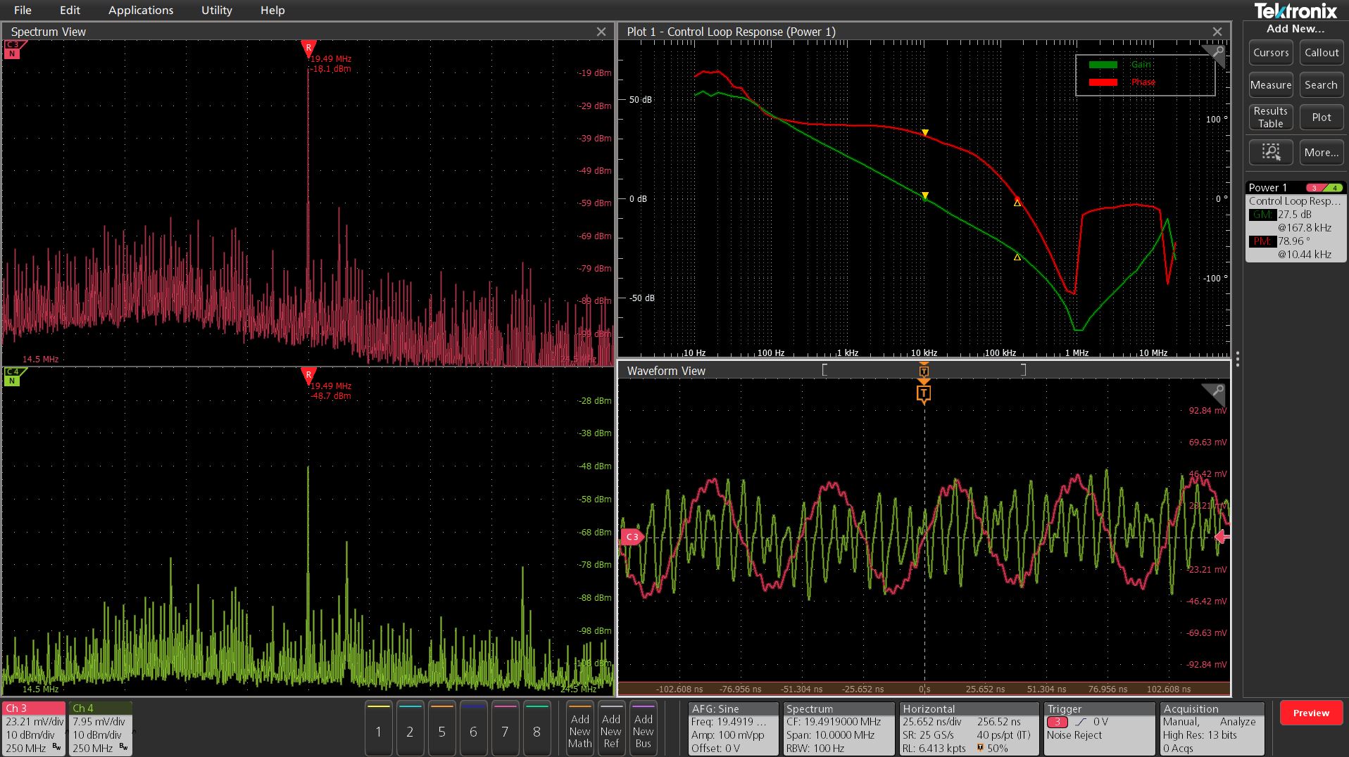 Sebbene l'analisi della risposta in frequenza possa essere eseguita con apparecchiature dedicate, gli oscilloscopi più recenti possono essere utilizzati per misurare la risposta di un anello di controllo dell'alimentazione.