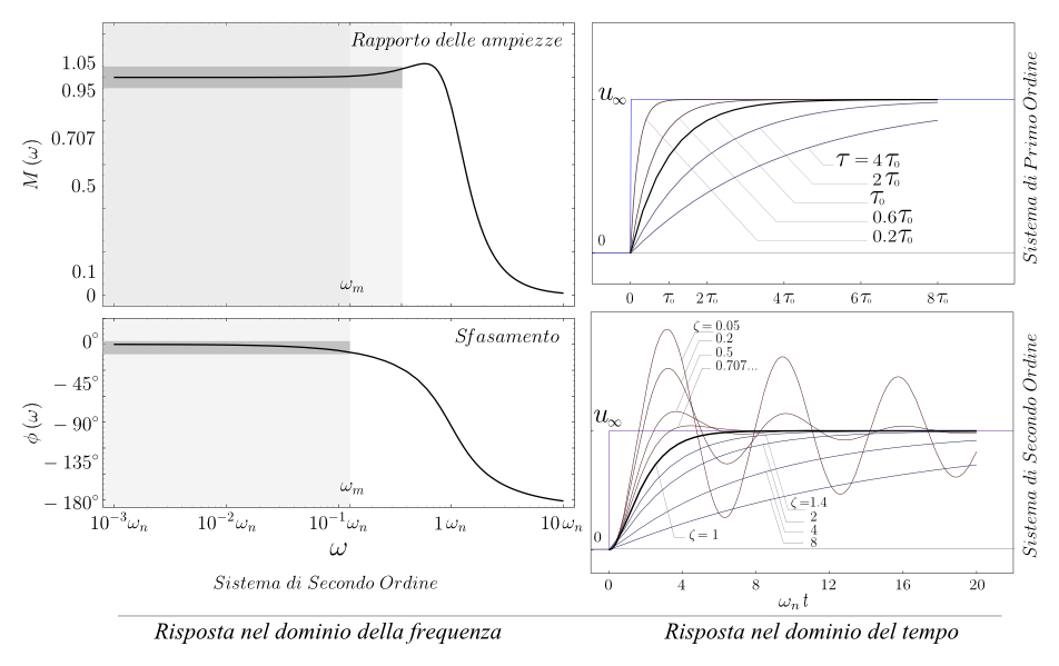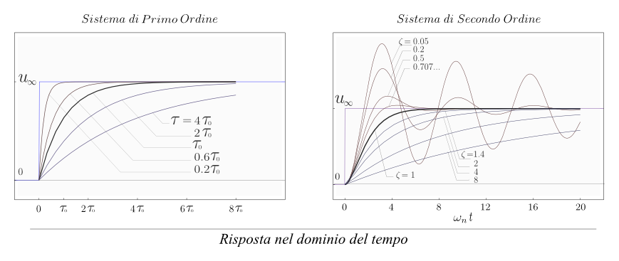 La risposta nel dominio del tempo è, molto succintamente, caratterizzabile dalla sola costante di tempo per i sistemi di primo ordine, e dalla frequenza di oscillazione e dal rapporto di smorzamento per quelli di secondo ordine