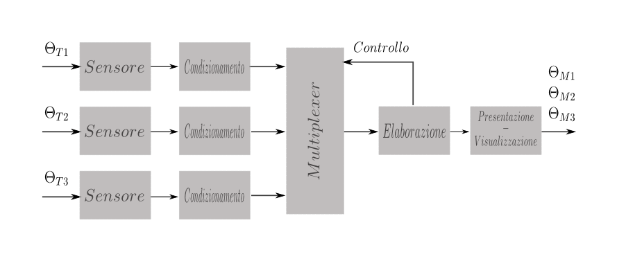 Per contenere i costi, quando sia richiesto di acquisire ed elaborare misure provenienti da numerosi sensori, si utilizza un'unica unità di elaborazione ponendola a valle di un multiplexer (multiplatore) che selezioni (in genere ciclicamente) le diverse catene di acquisizione. In certi casi i risultati stessi dell'elaborazione vengono distribuiti a sistemi di presentazione/visualizzazione/controllo distinti grazie all'impiego di un secondo multiplexer in uscita.