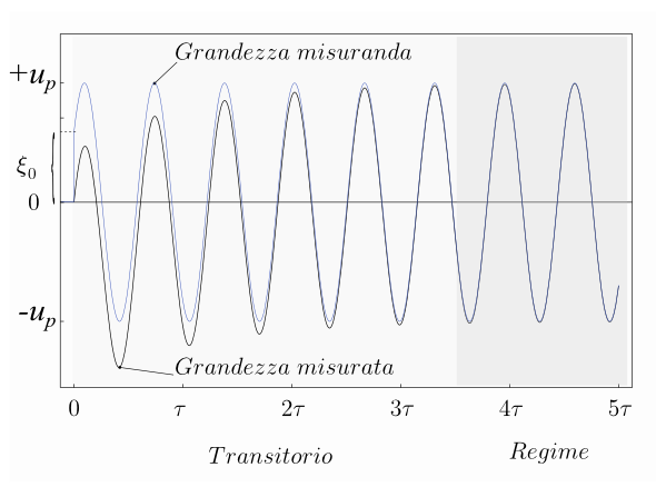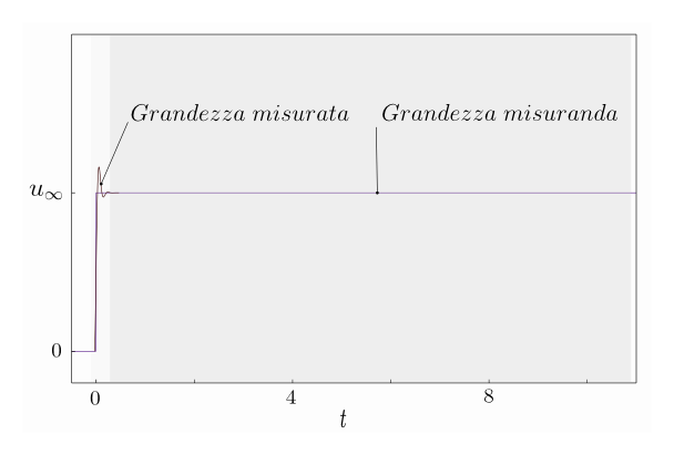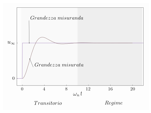Lo strumento reagisce a tale sollecitazione producendo una corrispondente variazione nella grandezza in uscita (ad esempio la posizione angolare del'ago che indica la corrente su una scala graduata). La risposta dello strumento non è in genere istantanea ed è necessario un certo tempo prima che l'uscita si assesti attorno al nuovo valore di equilibrio. In figura è mostrata la risposta di un sistema di secondo ordine a una sollecitazione a scalino.