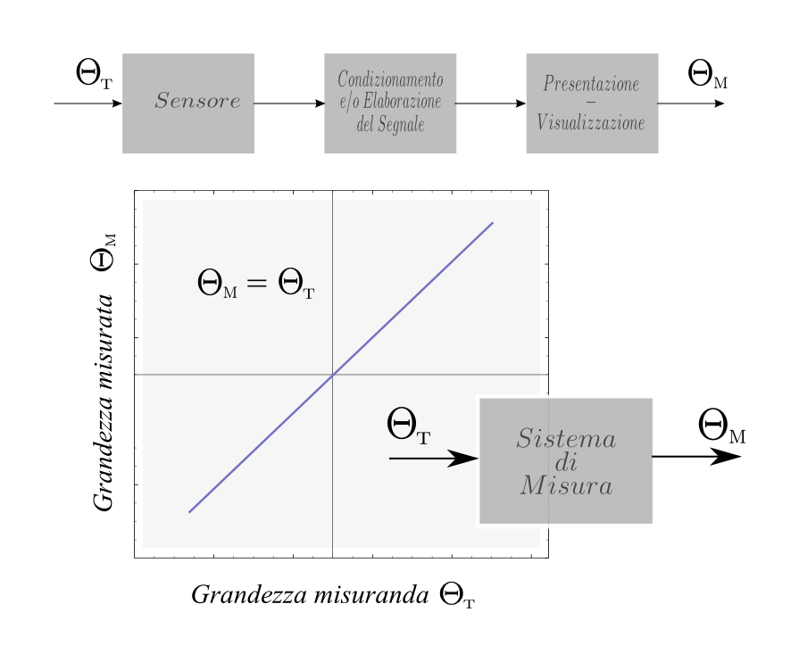In un sistema completo la corrispondenza ΘT-ΘM che costistuisce la caratteristica ideale è un'identità che fa corrispondere al valore vero ΘT della grandezza misuranda una lettura ΘM corrispondente al medesimo valore della grandezza misurata.
