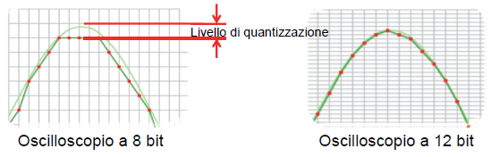 I livelli di quantizzazione in un oscilloscopio digitale sono dati dalla formula 2N bit di risoluzione