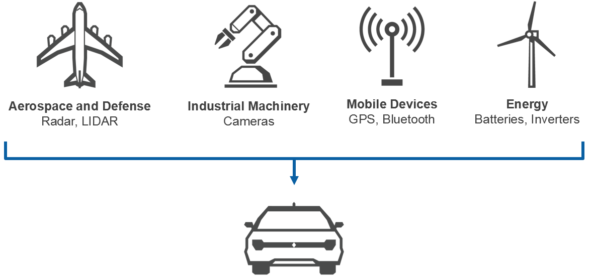 Le case automobilistiche sfruttano le novità introdotte in altri settori industriali per ottenere un vantaggio competitivo e venire incontro alle sempre maggiori richieste del mercato. I sistemi di sicurezza attiva utilizzano tecnologie derivate dall'industria aerospaziale o dalla difesa, come il radar e il LiDAR, in combinazione con l'approccio Sensor Fusion che fornisce ai veicoli una visione d'insieme dell'ambiente circostante.