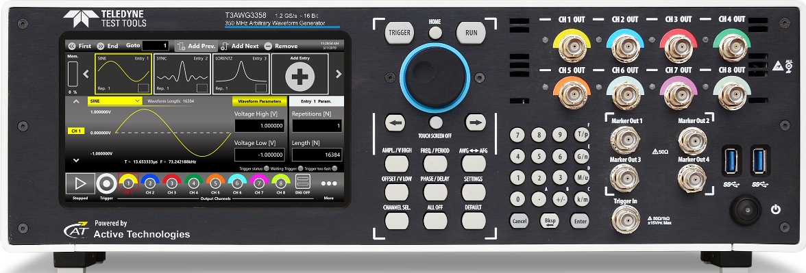 Per fortuna, acquistando un generatore di segnali T3AWG3K di Teledyne Test Tools il problema non si pone: lo strumento può funzionare in entrambe le modalità e garantisce elevata risoluzione verticale (16 bit), ampia memoria (1 Gp), grande velocità di campionamento (1,2 Gs/s), tanti canali sincronizzati (fino a 32) ed elevate gamma dinamica (± 12 V) con offset hardware aggiuntivo (±12 V).
