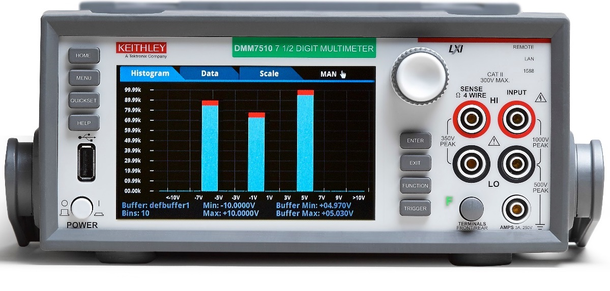 Fig. 3 - Il multimetro digitale Tektronix Keithley DMM7510 è uno strumento con risoluzione di 7 ½ cifre e caratteristiche di grande accuratezza che si adatta perfettamente a quantificare piccole cadute di tensione o piccole correnti di dispersione.
