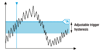 In pratica, lo strumento decide se la condizione di trigger è verificata oppure no agendo direttamente sugli stessi campioni del segnale digitalizzato analizzandoli in tempo reale. Conseguentemente, il disallineamento temporale tra segnale misurato è jitter è praticamente inesistente e si aprono inoltre nuove possibilità per definire le condizioni di trigger.