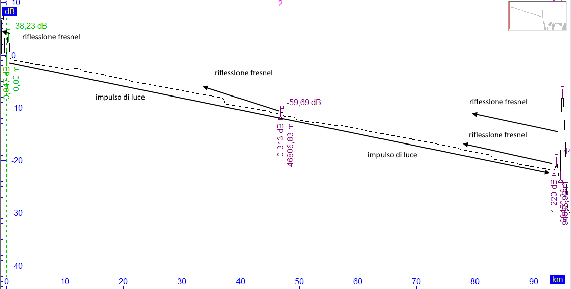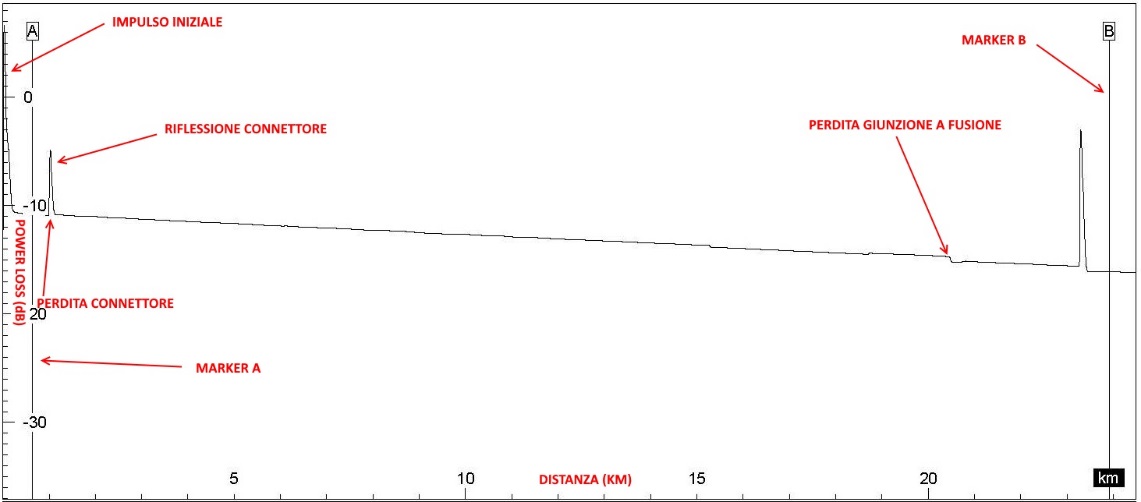 L'OTDR manda impulsi di luce attraverso una fibra ottica; dell'intero impulso, solo una piccola parte della luce viene rimandata indietro nella direzione opposta. Tale fascio di luce viene chiamato Backscatter. L'OTDR elabora la luce che torna indietro e crea la classica traccia OTDR (Fig.1).