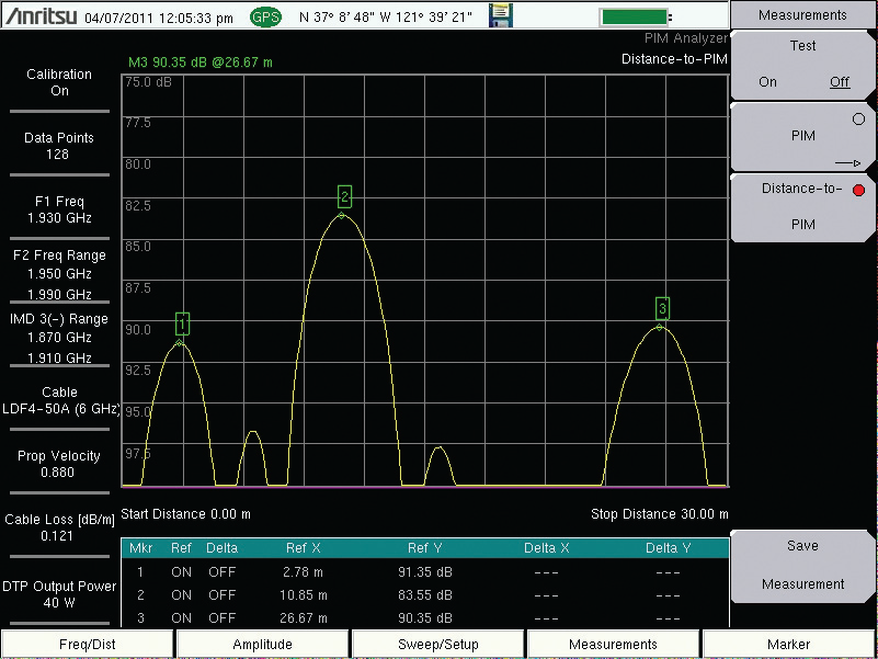 Poiché solitamente se si identifica la causa che provoca l’intermodulazione passiva di ordine 3 e la si elimina, d’incanto scompaiono o si attenuano notevolmente anche le altre, le misure di distanza dal guasto si concentrano sull’intermodulazione del terzo ordine.