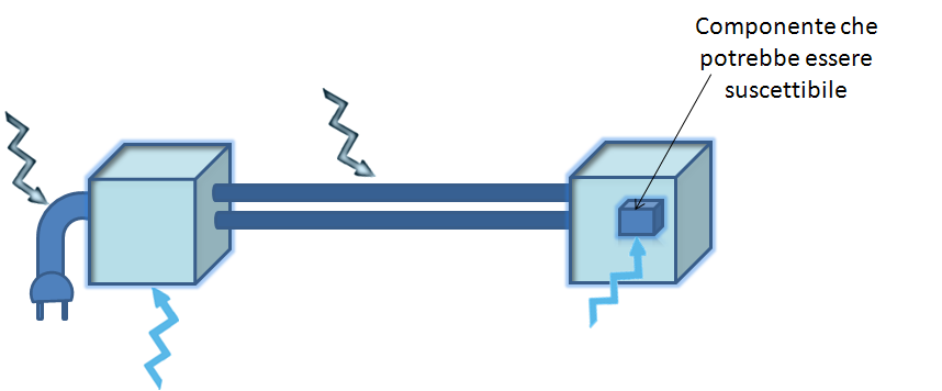 I segnali non desiderati possono essere irradiati oppure captati dai cavi di alimentazione, di interconnessione oppure dai contenitori metallici.