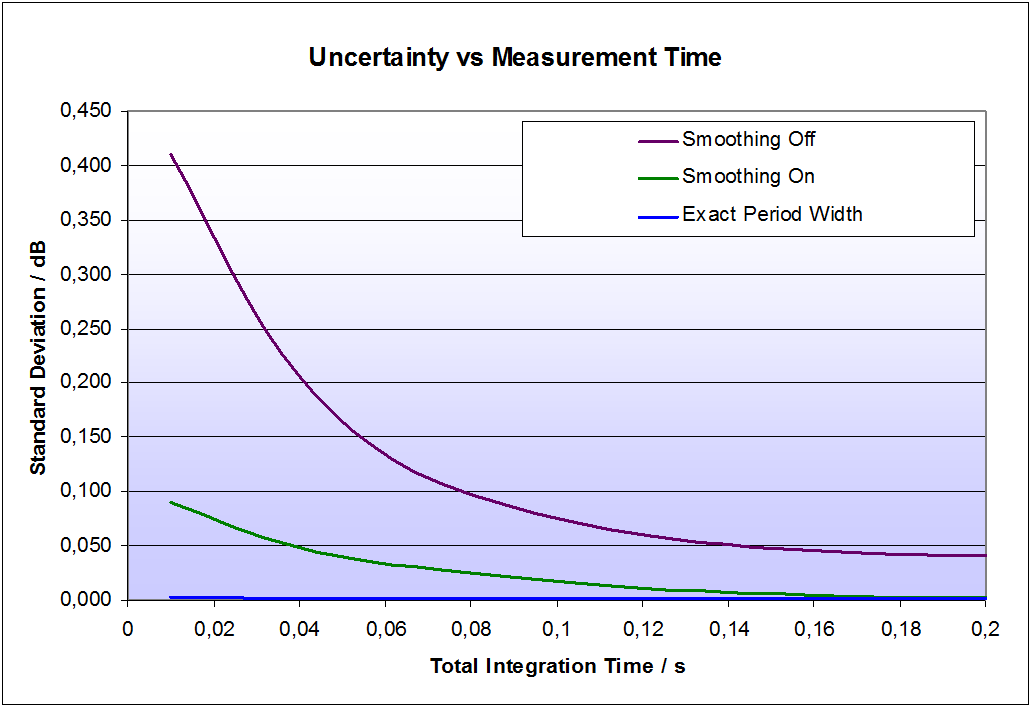 Nel caso di un segnale modulato in ampiezza, il tempo di integrazione deve essere un multiplo intero del periodo del segnale stesso. Se il periodo è sconosciuto o variabile, un considerevole miglioramento nella precisione può essere ottenuto moltiplicando la finestra di integrazione con un una curva a campana. Questa tecnica è conosciuta come “smoothing” (spianatura) con sensori di potenza tipo R&S NRP-Z.