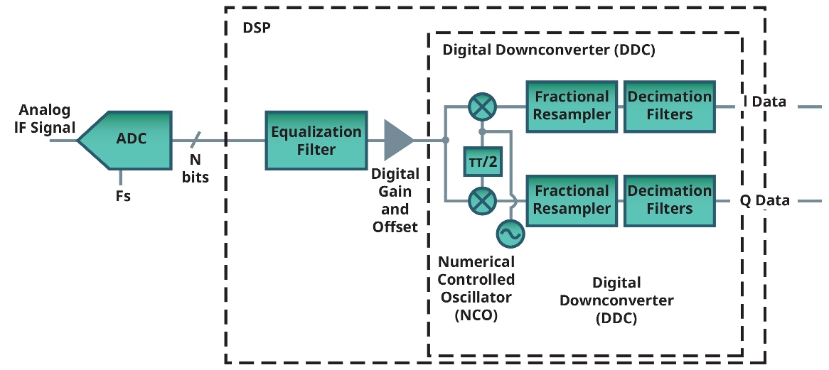 Il segnale di ingresso viene convertito alla frequenza intermedia (IF, Intermediate Frequency) tramite un miscelatore (mixer) collegato a un oscillatore locale (LO, Local Oscillator).