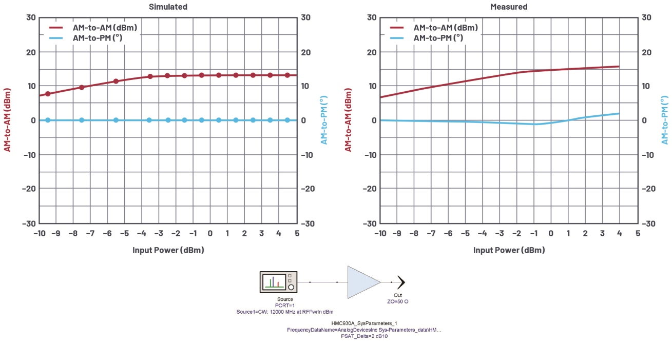 Il confronto tra i dati simulati e quelli misurati mostrano un'eccellente conformità. Mentre i modelli di Sys-parameter non possono essere utilizzati in ADS, è possibile seguire un processo relativamente semplice per migrare i dataset utilizzando la struttura del modello Amplifier2, che è nativa di ADS.