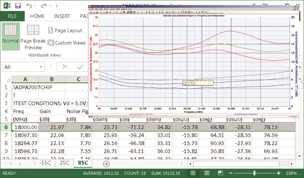 I simulatori Genesys e SystemVue utilizzano questi tre datapoint per generare dati interpolati ad altre temperature, anch'essi mostrati in Figura 7.