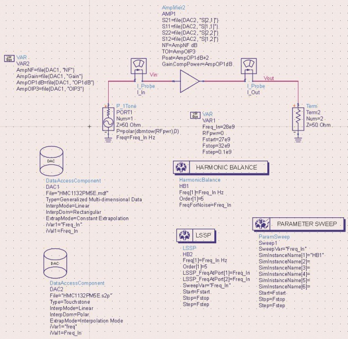 Questo articolo prenderà in esame alcune strutture di modelli di amplificatori RF che combinano dati lineari a parametri S con dati non lineari come il valore di rumore, IP3, P1dB e PSAT.